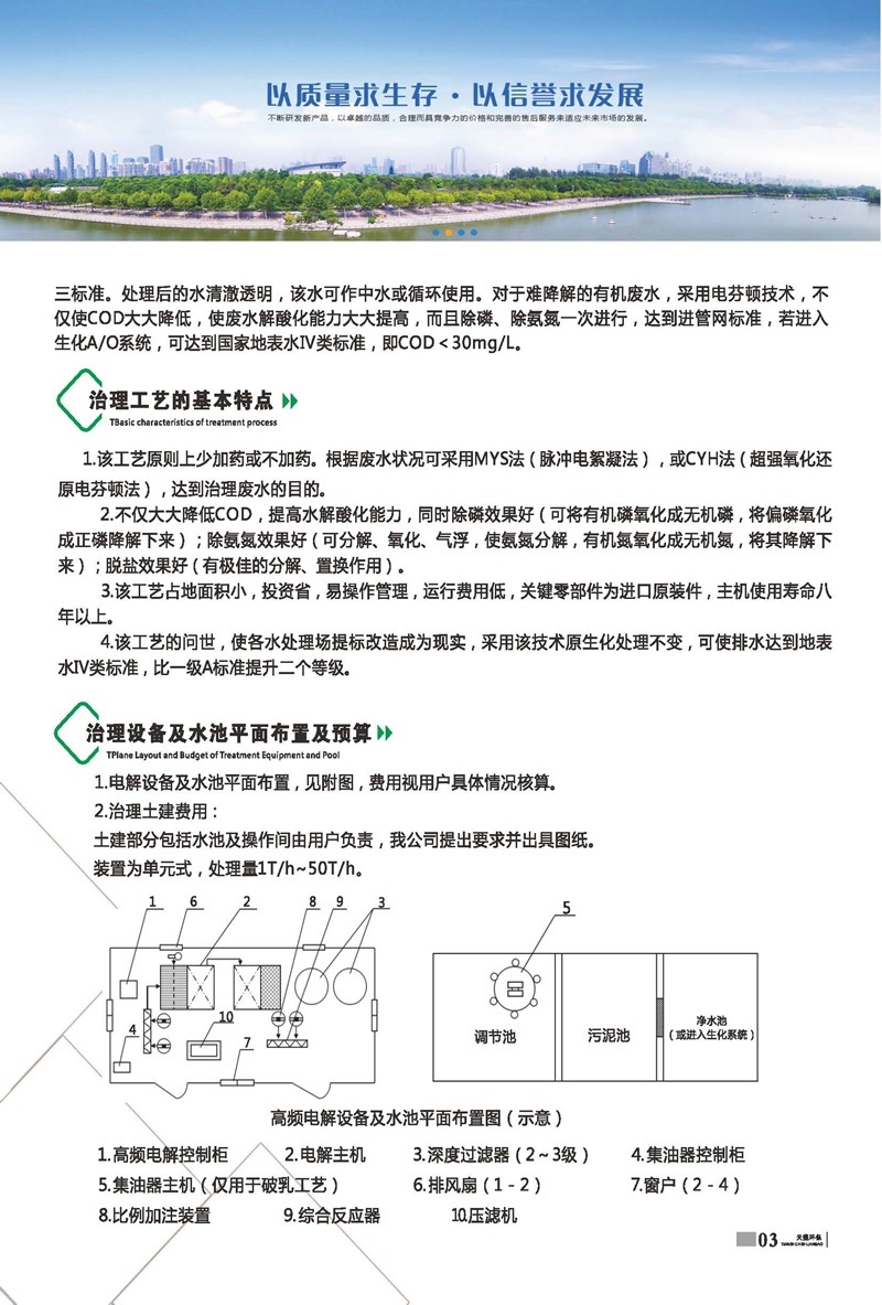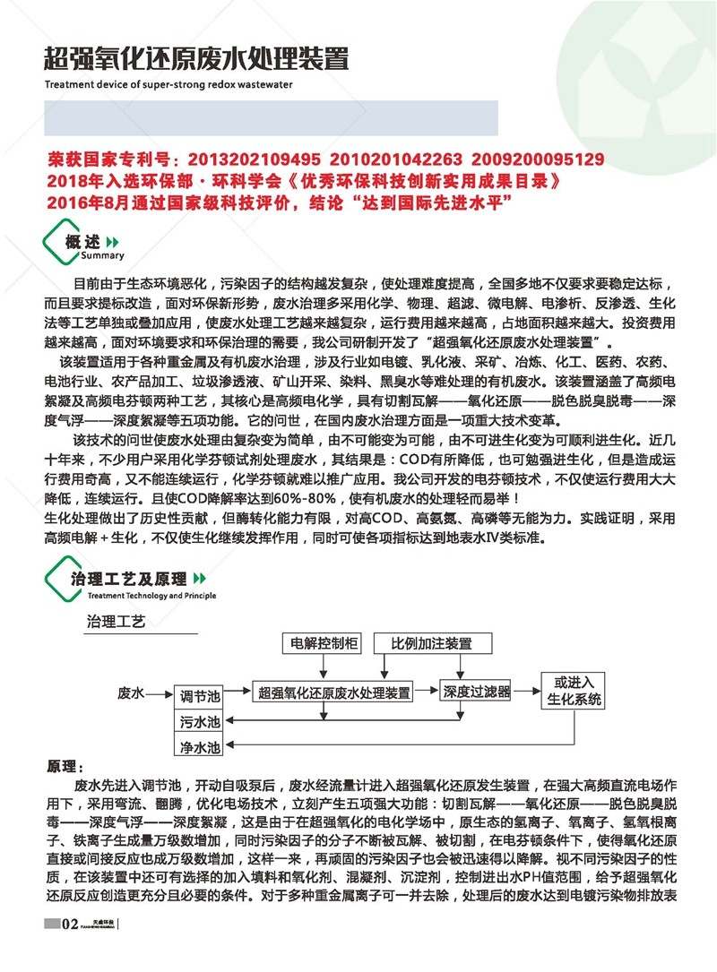 公司始建于1986年,以處理各種有機廢水、各種重金屬廢水為主,獨立研制開發(fā)多種節(jié)能環(huán)保產品,已獲多項國家發(fā)明及新型專利一種電化學廢水處理裝置 ZL 2013 2 0210949.5。公司堅持“以質量求生存、以信譽求發(fā)展、以市場為導向、以技術為依托”的宗旨。